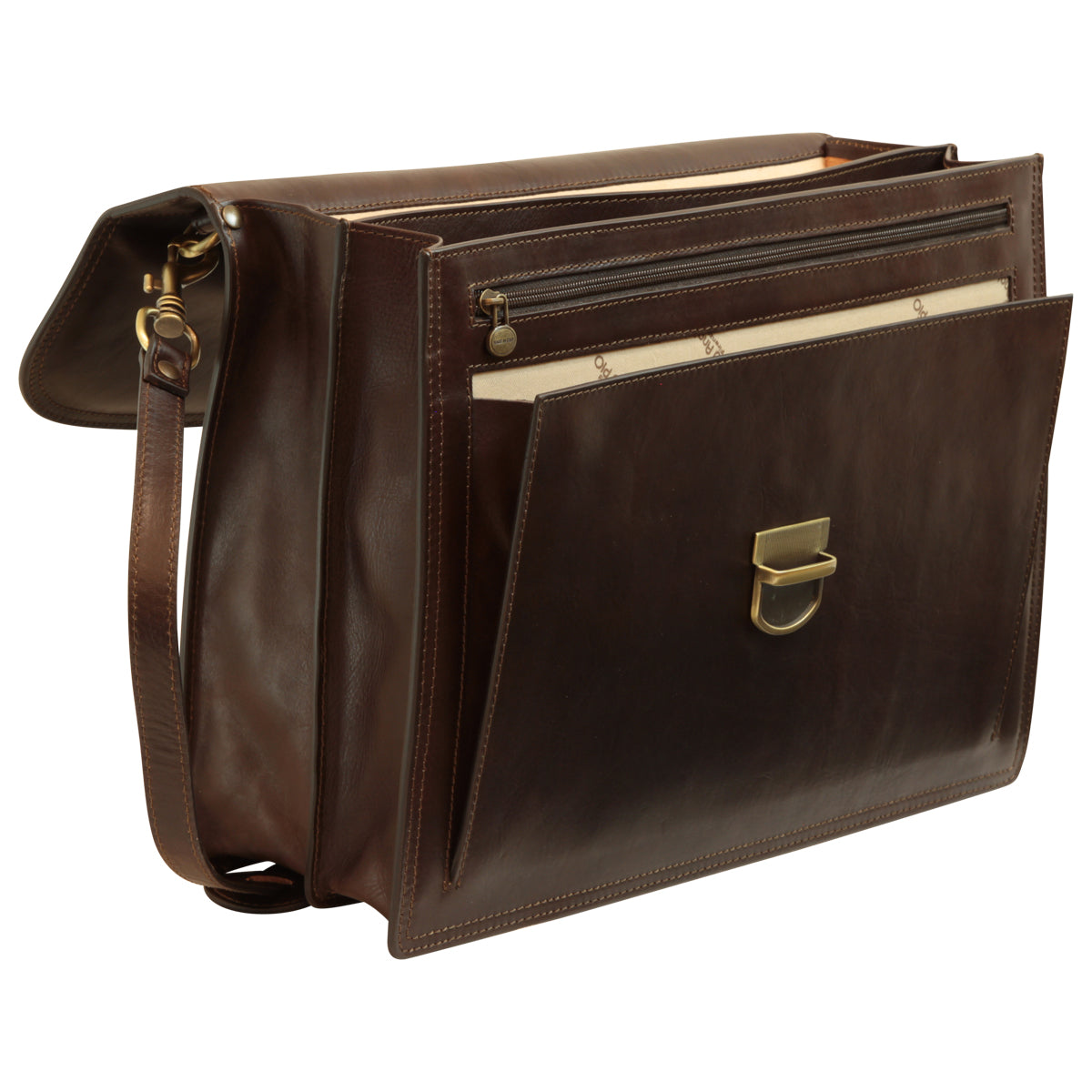 Briefcase With Leather Shoulder Strap - Dark Brown