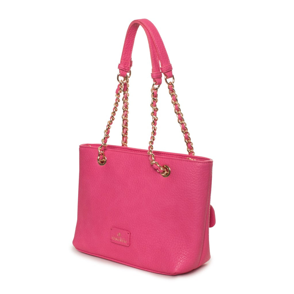 SHOULDER BAG, FOR WOMEN, DOUBLE HANDLE, SOLID COLOUR, WITH LOGO, ZIP CLOSURE
