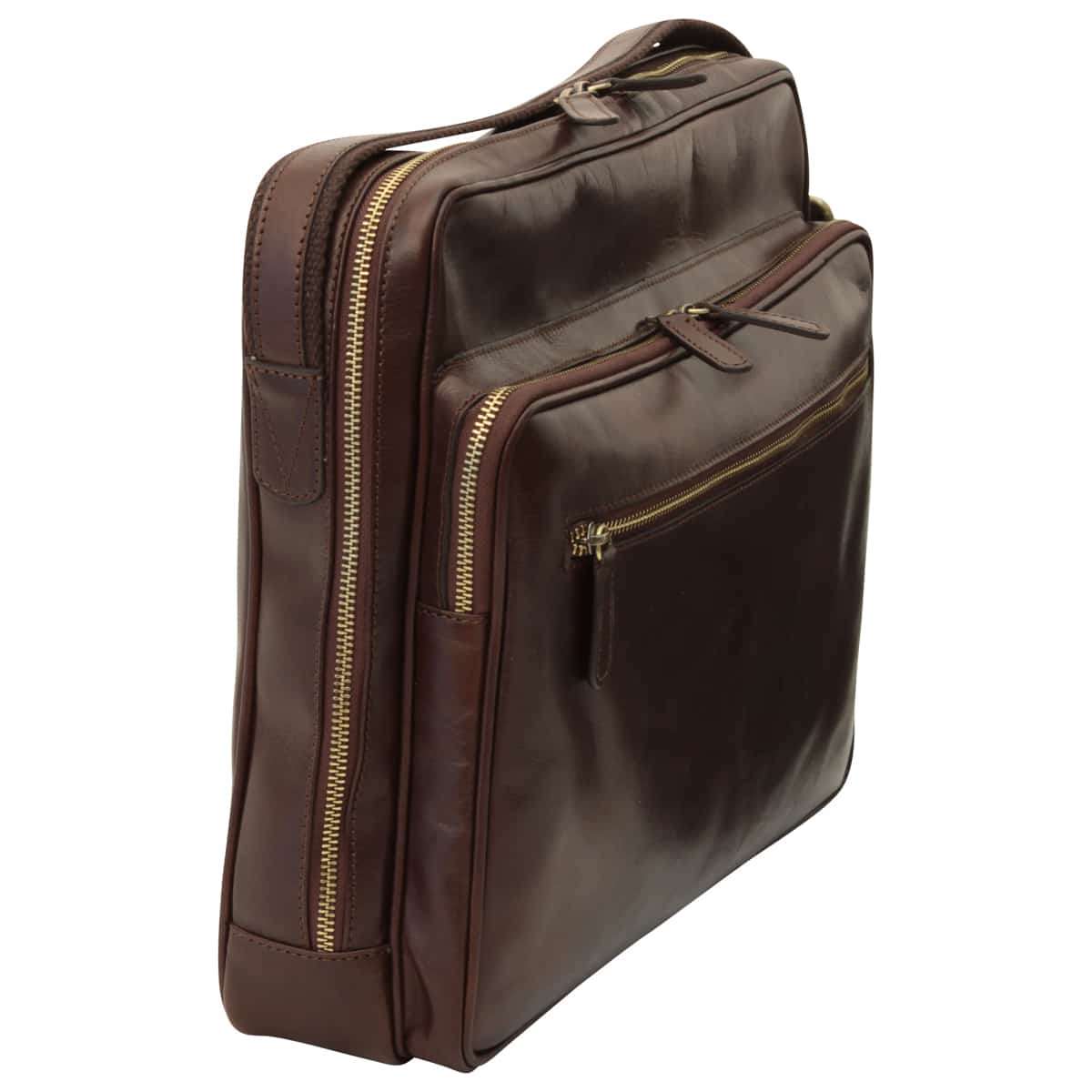 Large Leather Bag With Zip Closures - Dark Brown