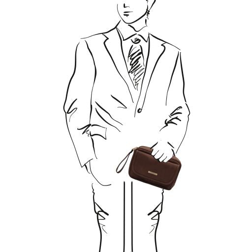 Short Description: Travel with ease and elegance. The Ivan - Leather handy wrist bag for men is handcrafted from premium Italian leather, offering spacious packing, smart pockets, and protective details for stylish getaways.